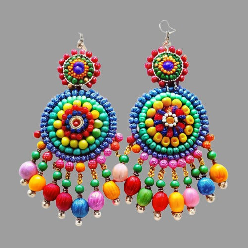 Multicolor Handmade Beaded Party Wear Dangler Earrings